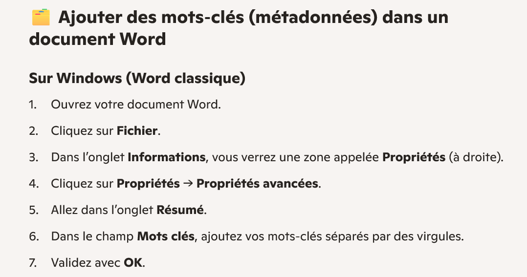 - Ajouter les mots clés: SNT, données structurées dans document1 ( voir méthode ci-dessous):