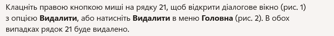 • Клацніть лівою кнопкою миші на номері рядка 21, щоб вибрати рядок 21