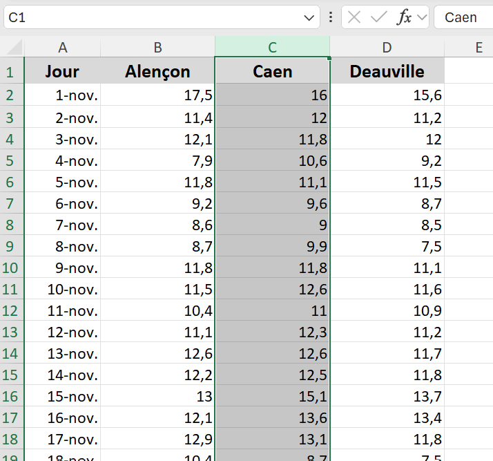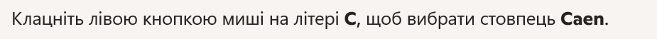 - Left‑click on the letter C to select the Caen column.