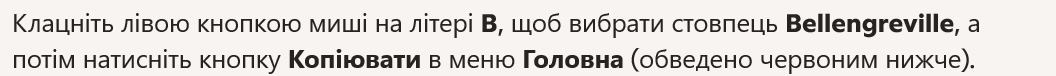 - Left‑click on the letter B to select the Bellengreville column, then click the Copy button in the Home menu (outlined in red below).