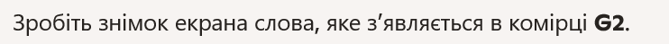 - Take a screenshot of the word that appears in cell G2.