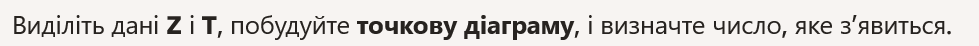 - Select the Z and T data, create a scatter plot, and note the number that appears.