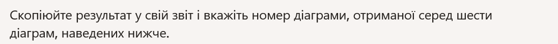 - Copy the result into your report and indicate the number of the chart obtained among the six charts shown below.
