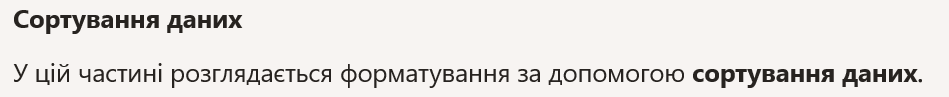 This section covers formatting using Data Sorting.