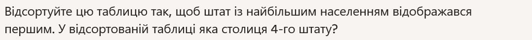 Triez ce tableau pour afficher en premier, l'état avec la plus grande population. Dans le tableau trié, quel est la capitale du 4eme état ?