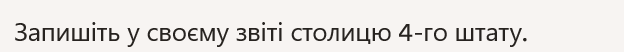 - Write down in your report the capital of the 4th state.