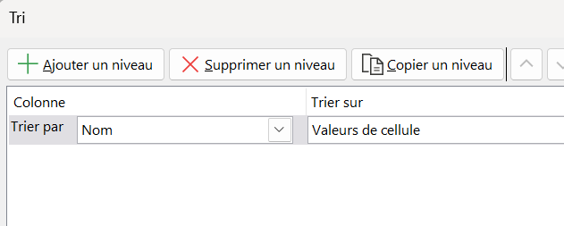Dans la boîte de dialogue de Tri, configurer:
