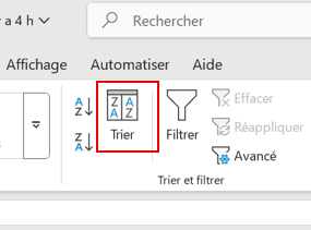 Cliquer sur Trier avec l’icône de tri Avancé ( encadrée en rouge ci-dessous).