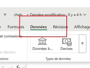 Aller dans l’onglet Données du ruban supérieur.