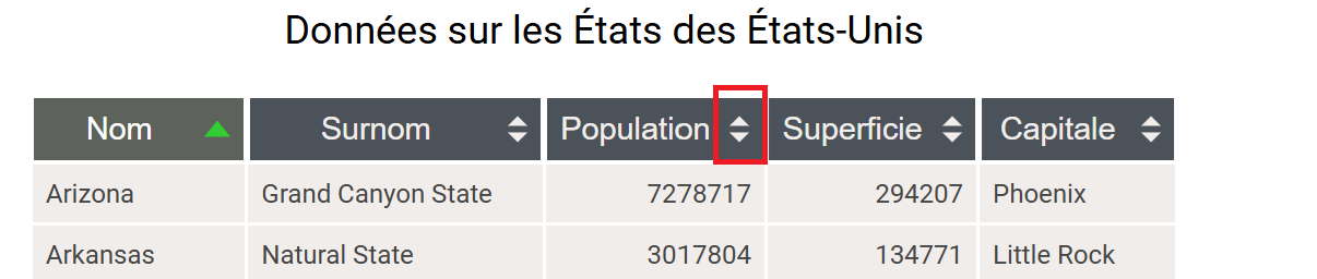- Ranger la colonne Population comme demandée dans la question en cliquant sur les flèches ( entourées en rouge ci-dessous):