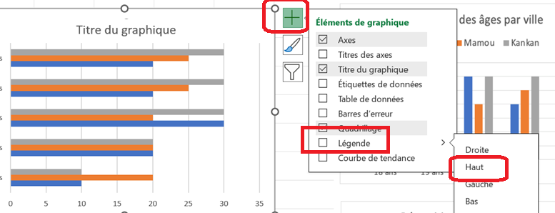 - Cliquer sur le bouton + puis sur légende puis sur la flèche à droite de Légende ( voir la capture ci-dessous), sélectionner en Haut, la légende se retrouve placée en haut: