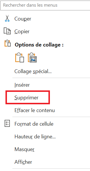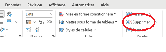 - cliquer droit sur la ligne 21 pour faire apparaître la boite de dialogue (fig 1) avec l'option Supprimer ou cliquer sur Supprimer du menu Accueil (fig2) dans les deux cas la ligne 21 est supprimée.