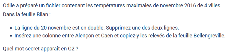 - Faire une capture d'écran du mot qui apparaît dans la cellule G2