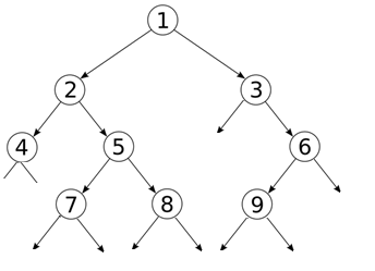 C) Parcours en largeur: Le parcours d’un arbre en largeur consiste à partir de la racine puis visiter le fils gauche puis le fils droit, puis le fils gauche du fils gauche, puis le fils droit du fils droit, puis leurs enfants, etc.. Cela donne l'affichage: 123456789 pour l'arbre étudié.
