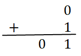 Si a = 0 et b = 1 => S = a+b => S= 0+1 = 1 => la somme S=1 et la retenue R=0