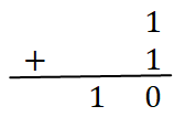 On vous propose de concevoir un additionneur binaire à partir d'opérateurs booléens. On vous rappelle le principe de l'addition binaire ci-dessous: