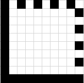 Dans le DataMatrix, on n'écrit pas les 1 et les 0, on utilise la couleur noire pour un bit = 1 et la couleur blanche pour un bit =0, voici le résultat (entouré en rouge ci-dessous) pour l'octet précédent placé dans le codeword2