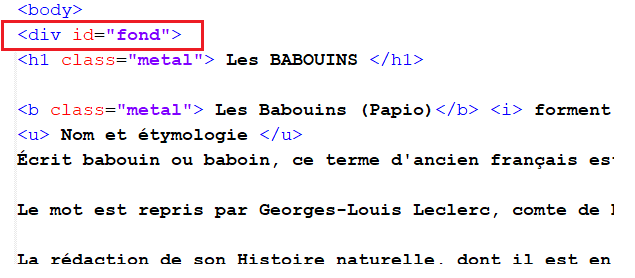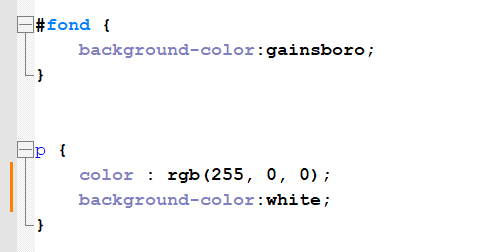 - Si le style de l'élément d'identifiant fond doit avoir un fond gainsboro , on définit une règle CSS pour l'identifiant fond ( dans le css un id est précédé d'un #)