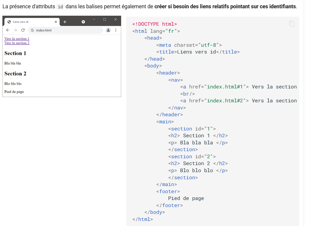 - L'identifiant ( id) permet d'identifier un élément qui doit être unique.