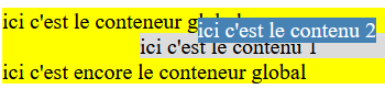 On ajoute un z-index à contenu1 pour le faire passer devant: