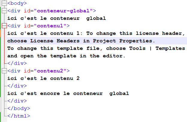 En rouge, toutes les balises html concernées: