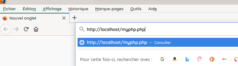 - Ouvrir un navigateur web de la machine virtuelle et demander la page http://localhost/myphp.php