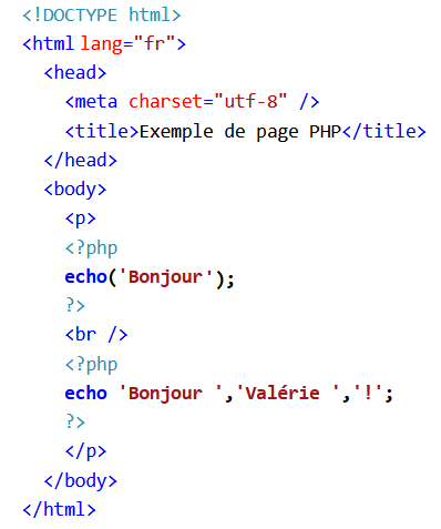 Voici un code php en rouge ci-dessous au milieu d'un code html en noir: