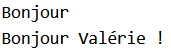 echo 'Bonjour'.$prenom.' '.$nom.'tu es né(e) le '.$date_naissance. ' à '.$lieu_de_naissance;