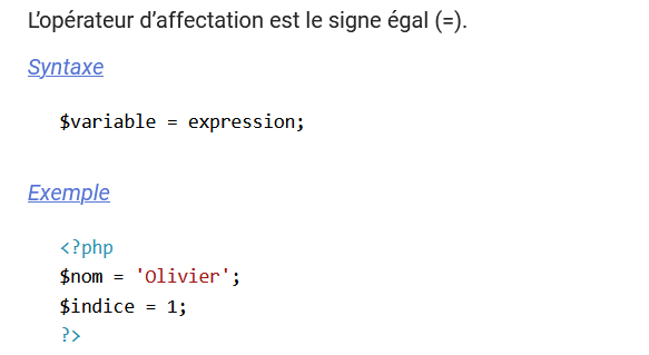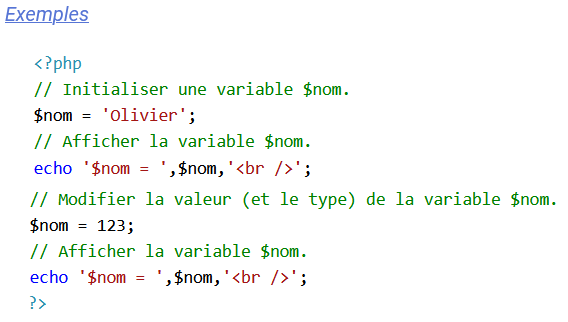Les variables PHP sont automatiquement définies lors de leur première utilisation, elles sont typées automatiquement lors de chaque affectation d’une valeur.