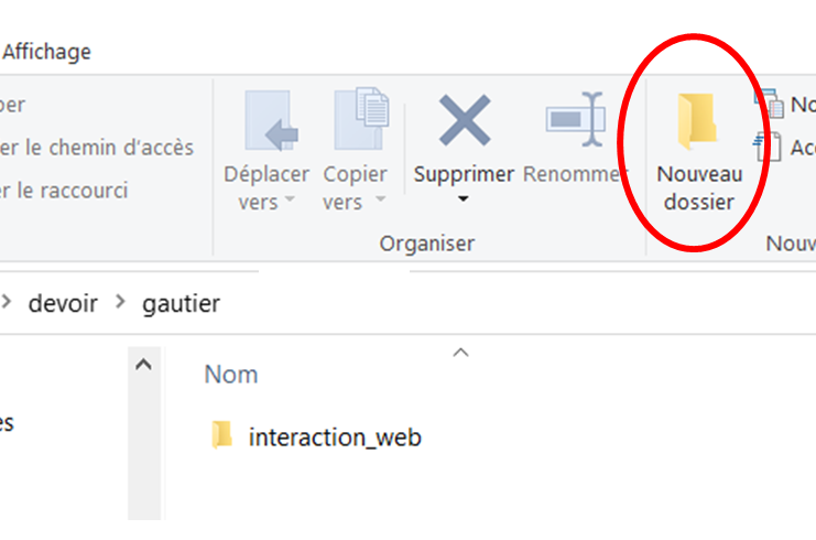 - Créer un dossier appelé "projet_web" dans votre dossier U:documents\documents\devoir\nom_prof