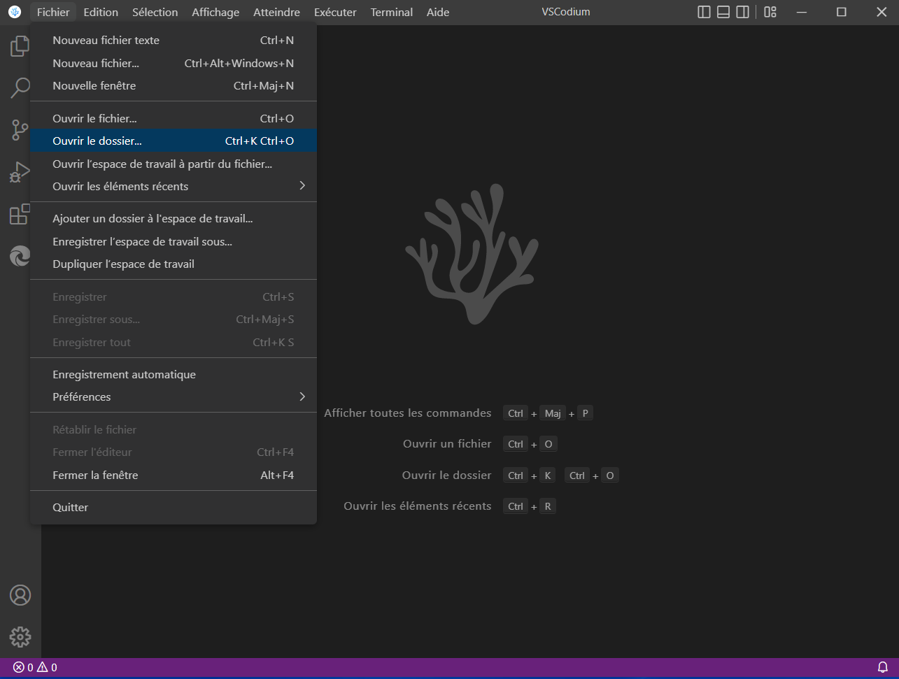 - Ouvrir le dossier avec le logiciel VS_codium ou le logiciel Visual Studio Code ( dans les logiciels par discipline)