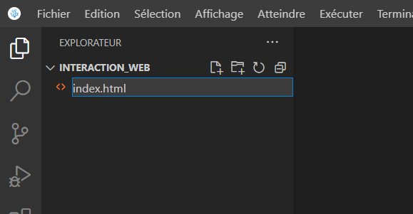 - Sélectionner ensuite "ajouter un fichier" avec l’icône entourée en rouge ci-dessous, nommez le fichier " index.html":