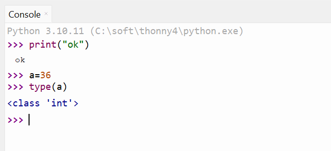 On peut connaître le "type d'une donnée" associé à une variable avec l'instruction type (nom de la variable) , dans la capture d'écran ci-dessous, vous pouvez voir que si on saisit type ( a ) puis que l'on presse la touche Entrée pour exécuter le code, python affiche :