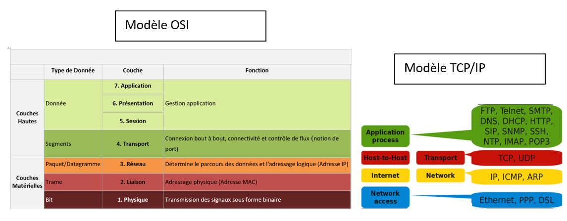 Il existe deux protocoles de contrôle de transmission appelés UDP et TCP qui interviennent au niveau la couche transport du modèle TCP/IP ( au niveau de la couche 4 du modèle théorique OSI).