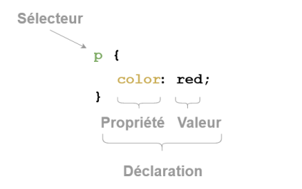 - Les déclarations de style sont définies entre accolades et séparées par des points virgules " ; ",