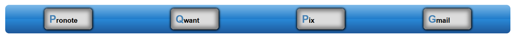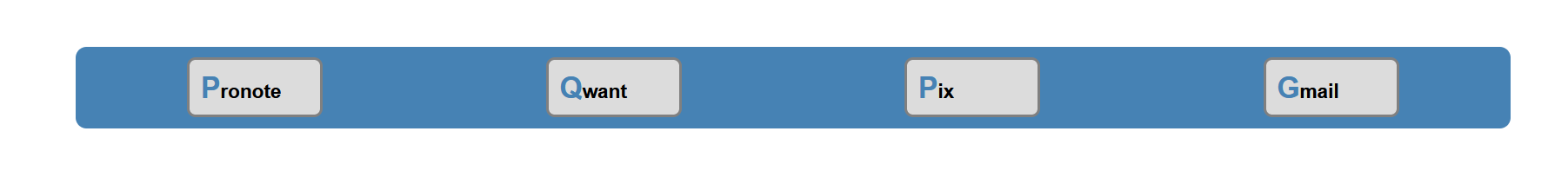 En utilisant ce qui a été vu précédemment, réaliser le bandeau ci-dessous qui propose 4 liens hypertextes (boutons de navigation) vers les sites web de Pronote, Qwant, Pix et Gmail: