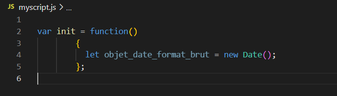 - Ajouter cette ligne de code dans une fonction appelée init qui est à placer dans le fichier myscript.js: