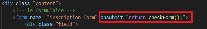 - Ajouter l'attribut onsubmit dans la balise <form>: