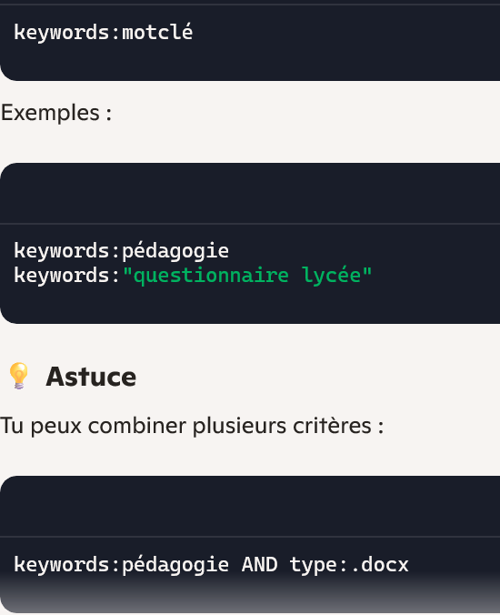 - Rechercher le document word avec la barre de recherche en précisant les mots clés SNT et données structurées et que vous ne voulez pas le mot maths dans le document.