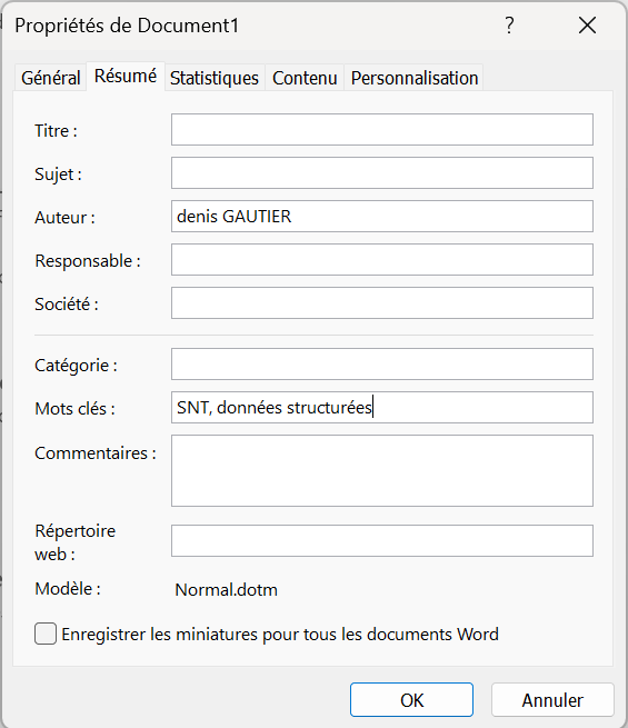 - Ajouter les mots clés: SNT, données structurées dans document1 ( voir méthode ci-dessous):
