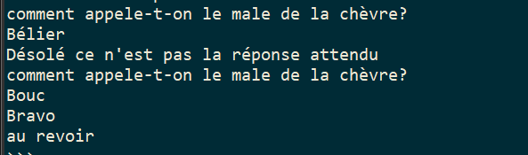 tant que la réponse sera différente de 'Bouc', la question sera posée, exemple: