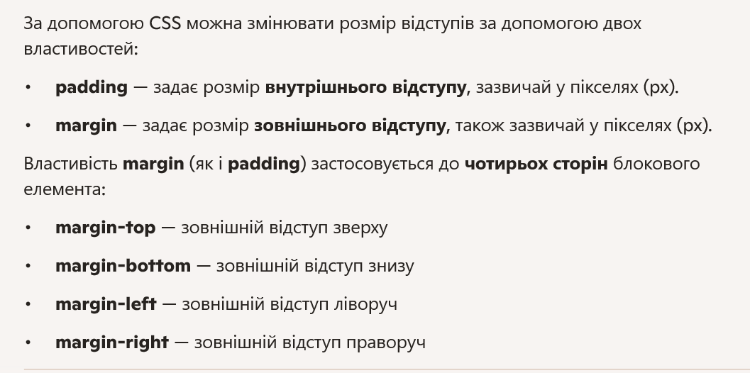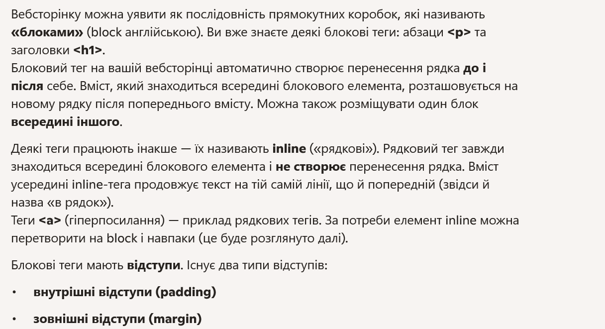Block type tags have margins. There are two types of margins: inner margins (padding) and outer margins (margin).
