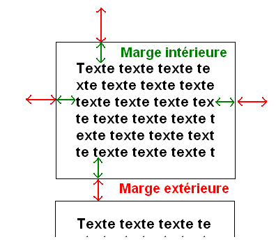 Les balises de type block possèdent des marges. Il existe deux types de marges : les marges intérieures ( padding) et les marges extérieures (margin).