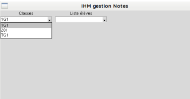 Pour pouvoir renseigner les données de la liste déroulante, il faut se connecter à la base de données et remplir la liste list_classes comme vu dans les questions précédentes.