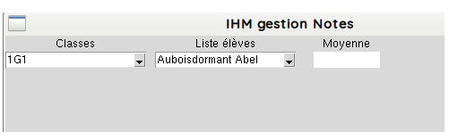 - Ajoutez deux labels en colonne 2 pour afficher la moyenne de l'élève sélectionné:
