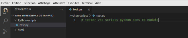 Sélectionnez le dossier Python-scripts du volet de gauche puis cliquez gauche sur test.py: