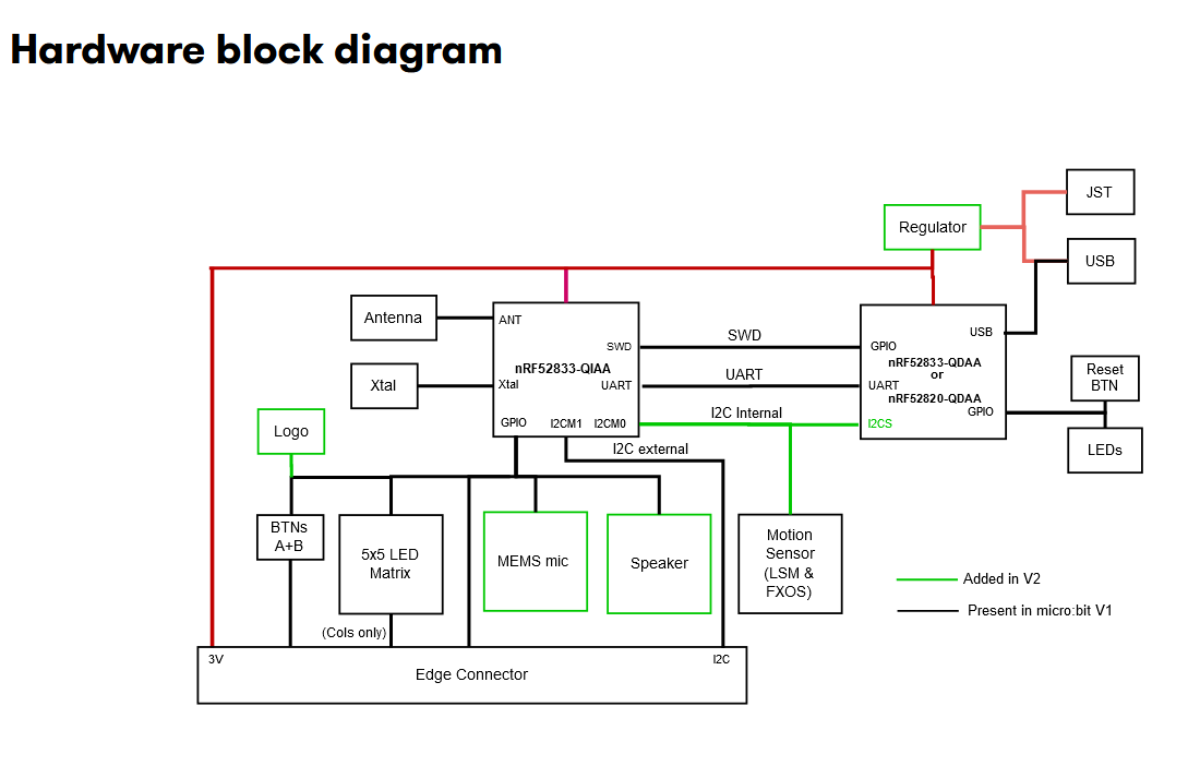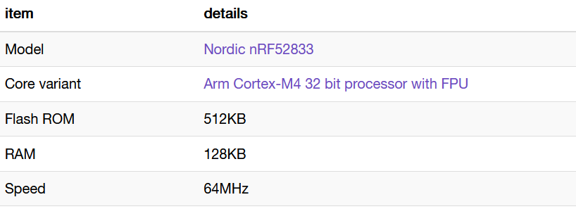 L'ensemble est gérée une puce Nordic nrf52833 qui met en œuvre l'architecture ARM CortexM