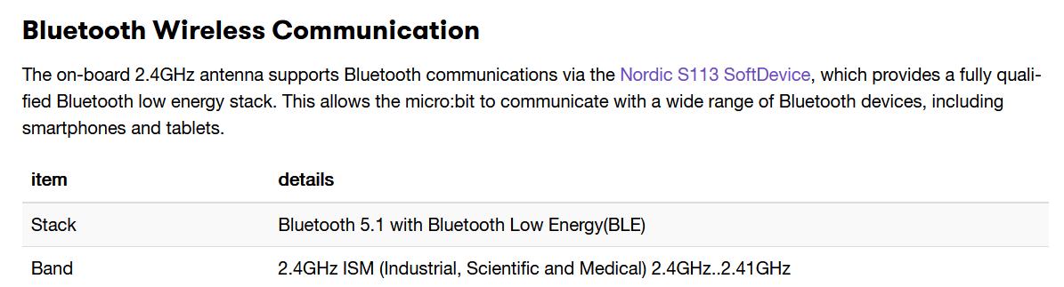 La puce comprend un module radio intégré à 2,4 GHz qui peut être utilisé pour une communication Bluetooth Low Energy (BLE) ou en liaison radio simple avec un protocole conçu pour la carte micro:bit ( le protocole MicroBitRadio )