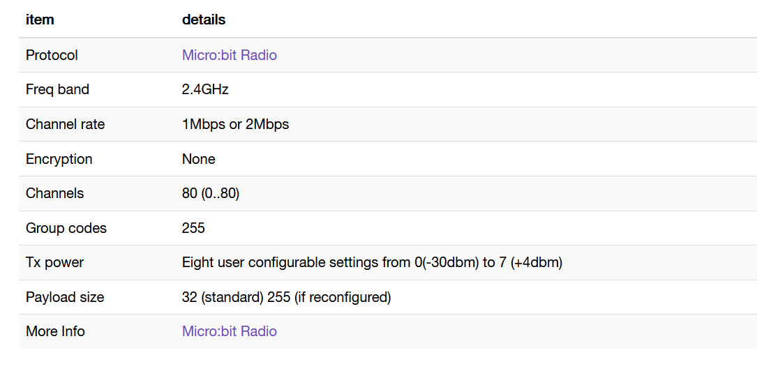 Le protocole MicroBitRadio est utilisable pour les programmeurs avec trois classes: MicroBitRadio, MicroBitRadioEvent et MicroBitRadioDatagram.
