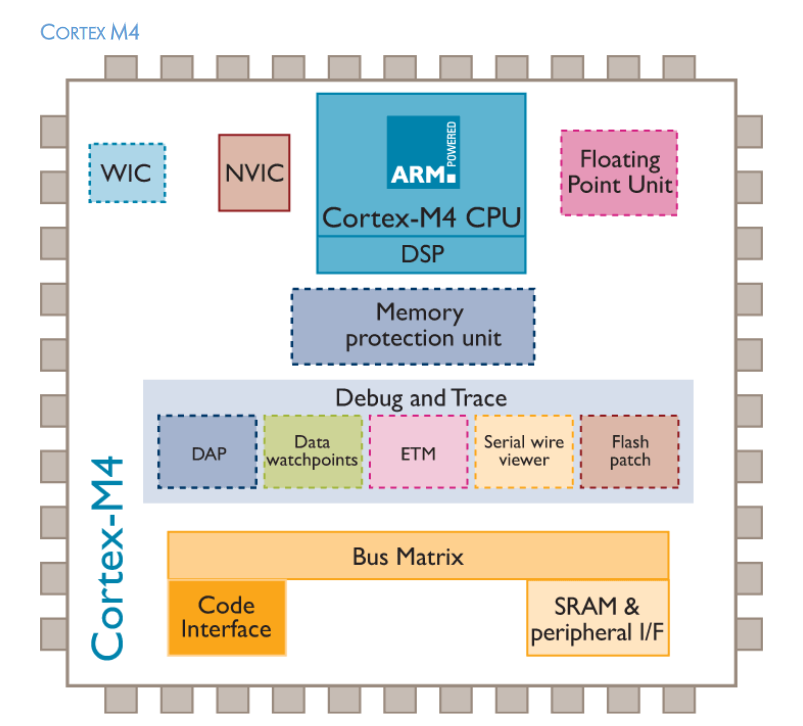 La famille de processeurs Cortex-M ( microcontrolleurs) utilisent un jeu d'instructions réduit RISC, elle satisfait de nombreux domaines professionnels comme le contrôle de moteurs pour robots, l'électronique embarqué pour automobiles, la gestion de l'énergie, les marchés de l'audio et des objets connectés.